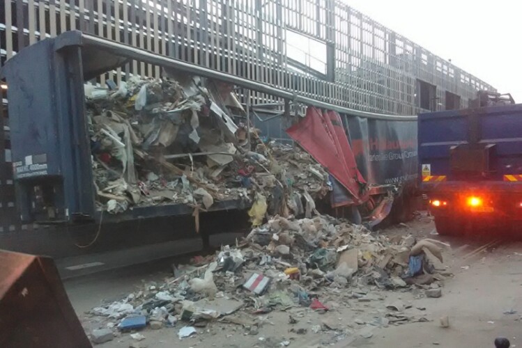 The curtain sides had begun to tear, spilling 10 tonnes of builders’ waste, rubble and other debris on to the road and blocking its access.