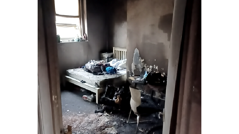 Part of the three-roomed first floor flat in the three-storey building was damaged by the fire.