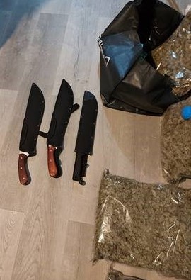 Officers from Wandsworth and Merton executed a warrant on Sunday, September 12, leading to two arrests, and the recovery of three large machetes and sack-fulls of marijuana.