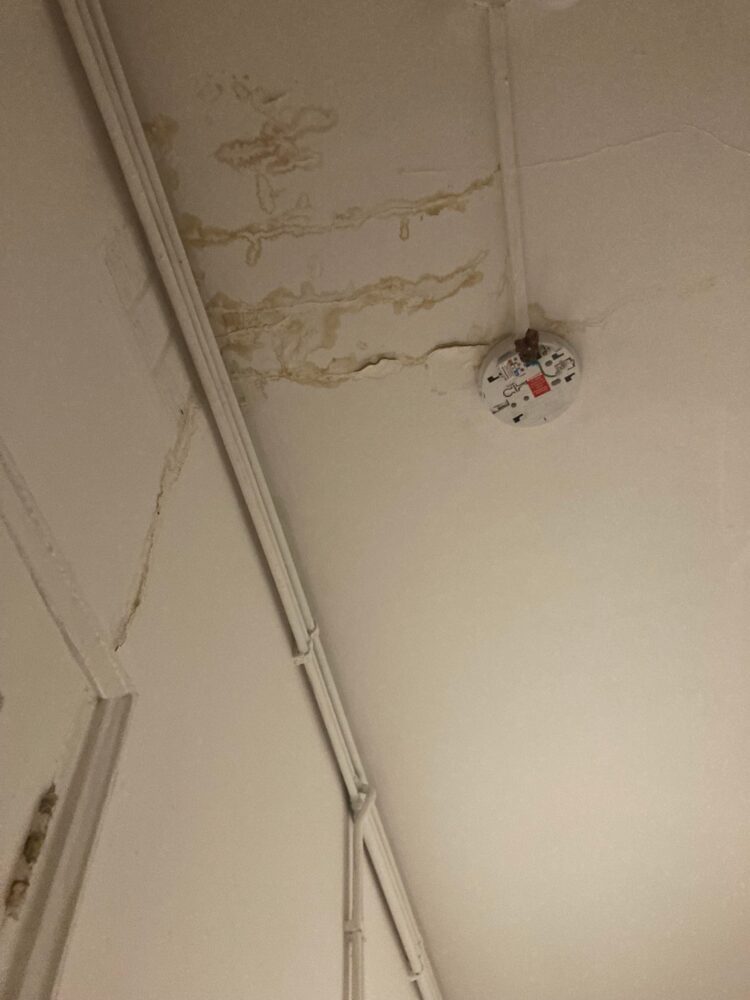 Water damage from the leak above in Jeffrey Frimpong’s flat (Picture: Robert Firth)