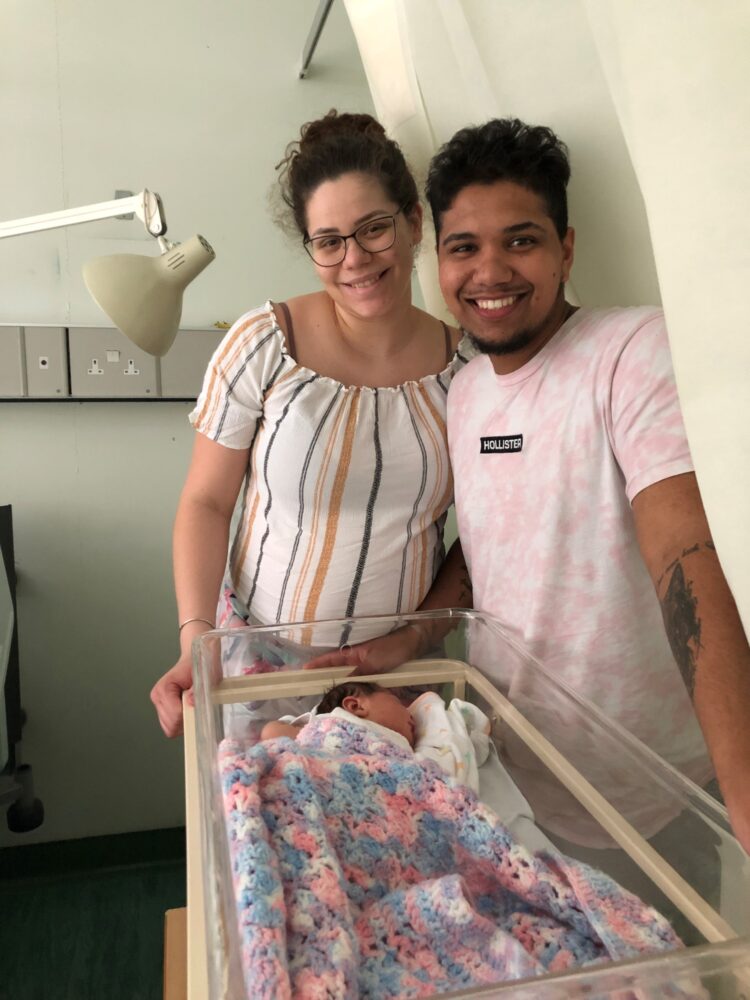 When Mrs Magalhaes Arruda’s contractions became stronger she was driven to hospital by her husband, Pedro Dos Santos, also 22.