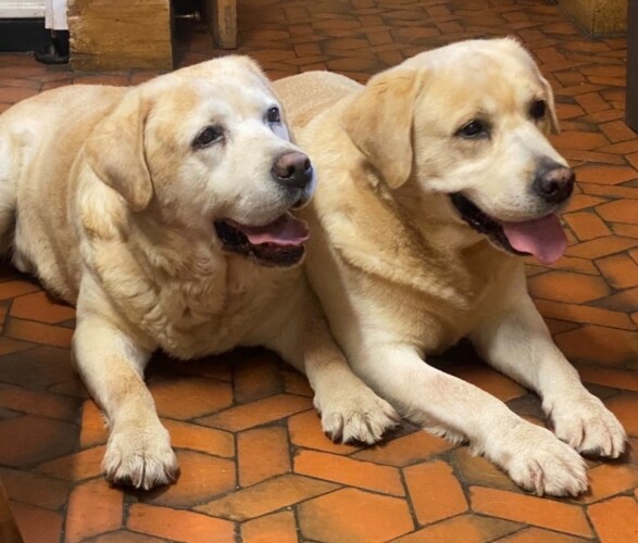 Doggy duo Pet Labradors Achilles and Hector will be in attendance to support owner Lucinda Layfield as she runs her marathon (Picture: Battersea Dogs Home)
