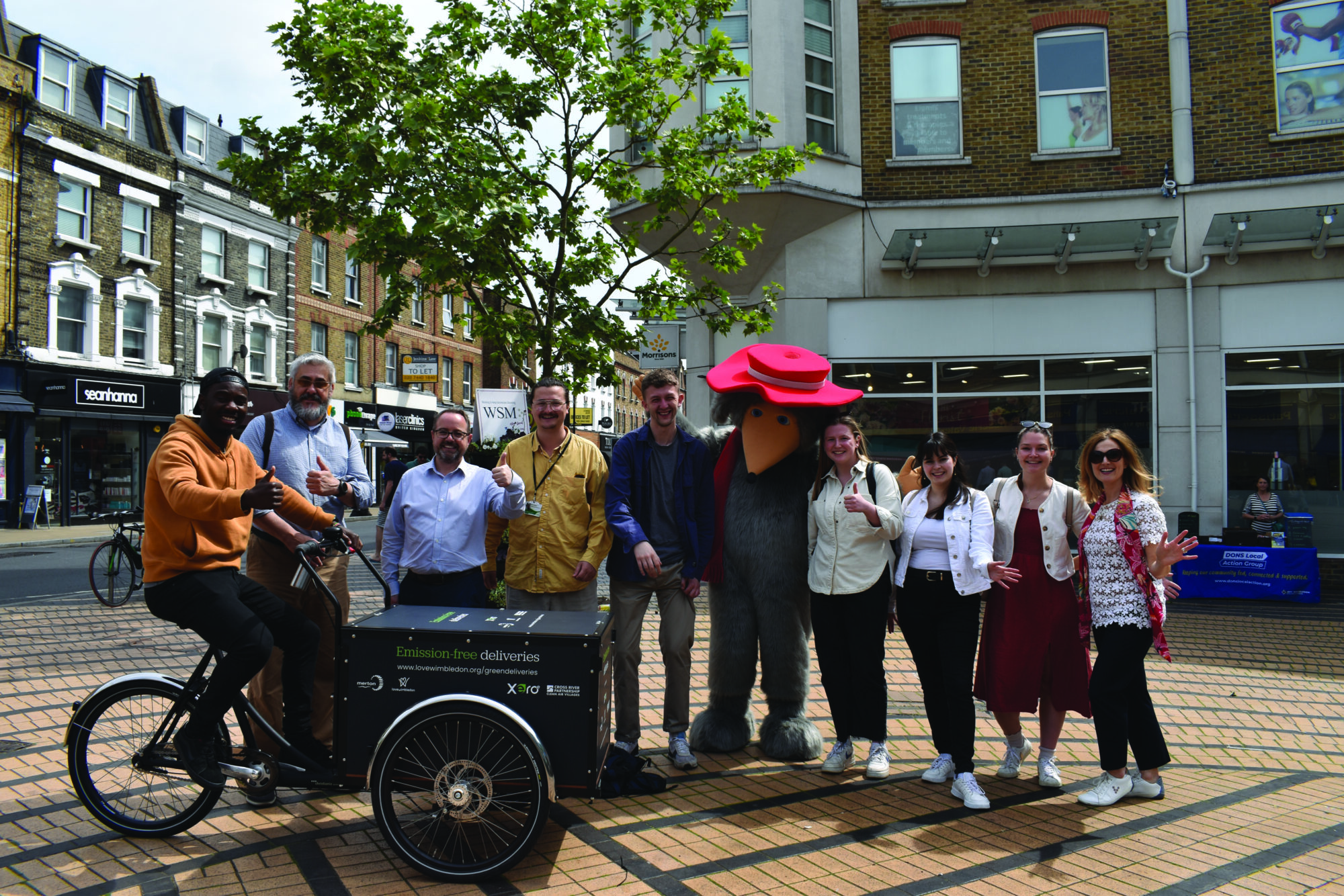 Pictured top: A Womble with representatives of Cross River Partnership, London Borough of Merton, Love Wimbledon and cargo bike provider XeroE.