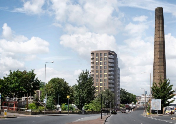 Pictured top: A CGI of the block planned on the site with the chimney beside it (Picture: Mark Smith Architects / Lakeview Estates One Limited)