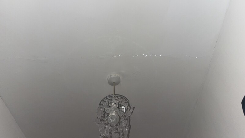 A crack running across Sophie Nolan’s ceiling has been leaking water from the flat above for more than a week (Picture: Sophie Nolan)