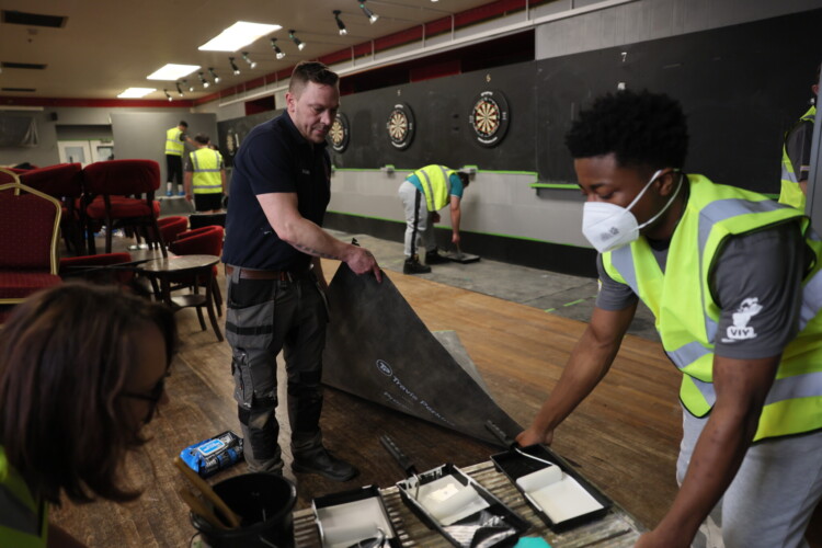 In just over a week, the team of volunteers updated the youth darts arena and adults dart space, transformed the main entrance area by sanding the wooden flooring, repaired damaged walls, doors and skirting boards and repainted the interior.