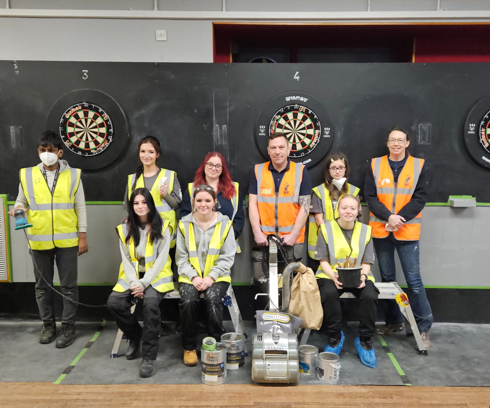 In just over a week, the team of volunteers updated the youth darts arena and adults dart space, transformed the main entrance area by sanding the wooden flooring, repaired damaged walls, doors and skirting boards and repainted the interior.