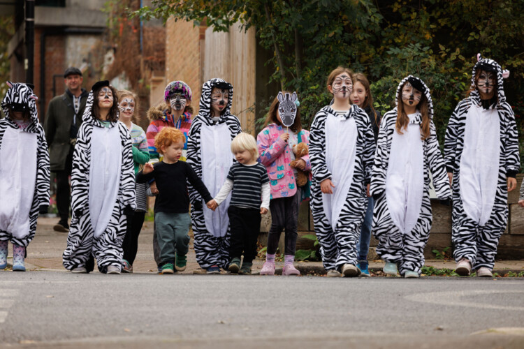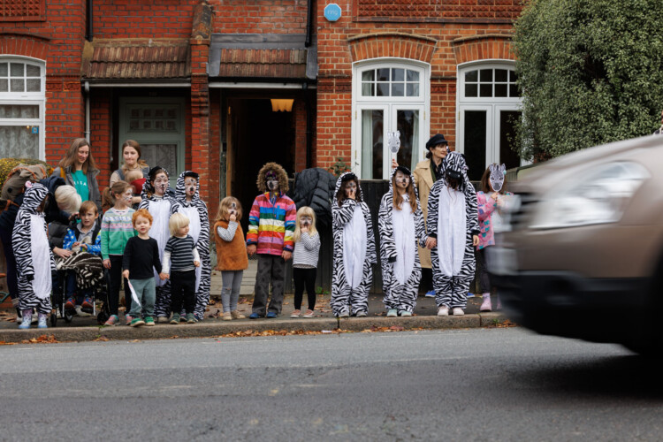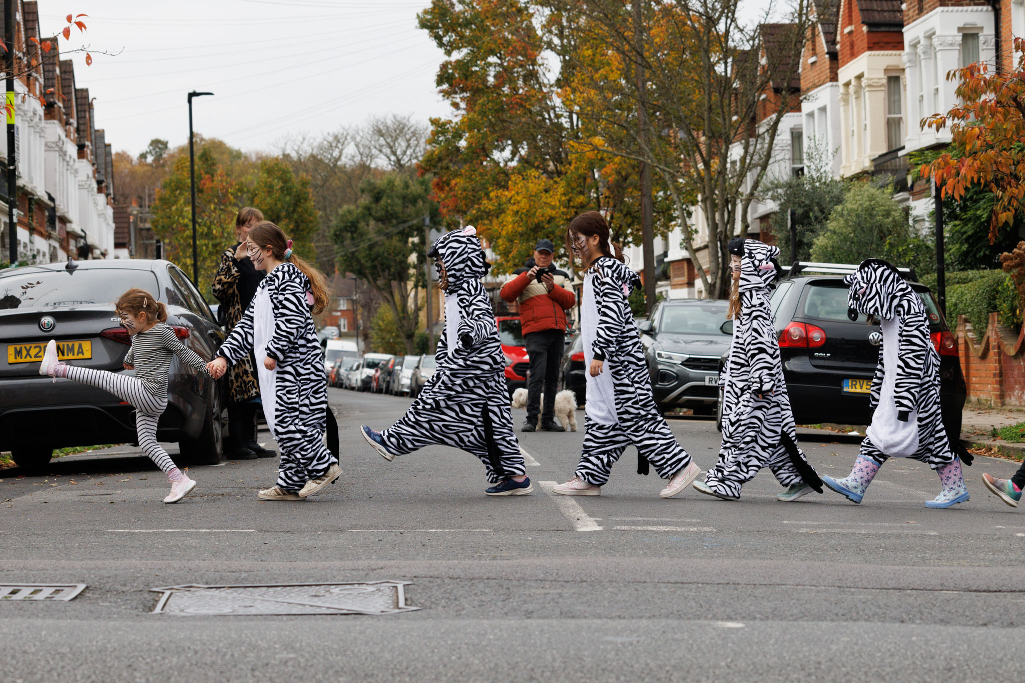 Pictured top: Children dressed as Zebras take to the street for road safety awareness week (Picture: Crispin Hughes)