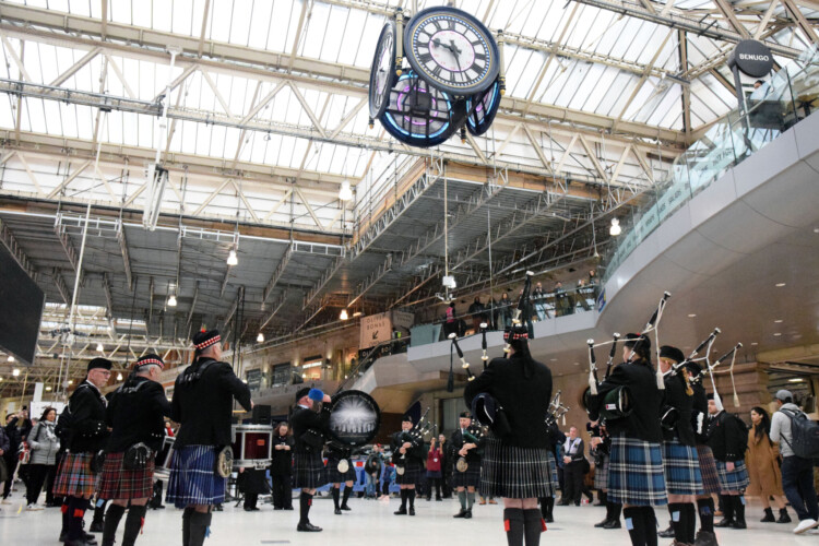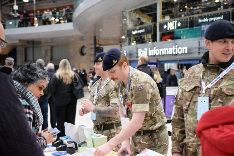 Armed Forces personnel, veterans and volunteers were collecting at London Waterloo railway station, where customers were met with musical performances by military bands.