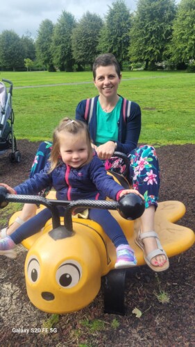 Ms Postance at the playground with her daughter Alice (Picture: Brain Tumour Research)