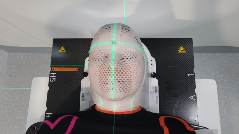 Ms Postance having her radiotherapy mask fitted in December 2022 (Picture: Brain Tumour Research)