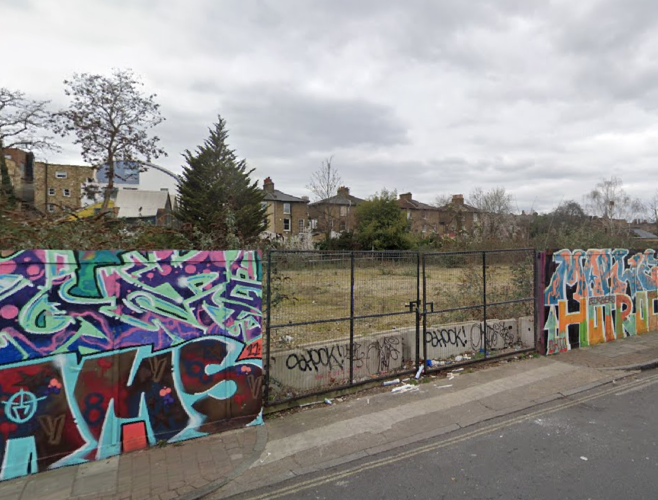 A cleared site near Queens Road Peckham railway station owned by the council. It could be used for housing, offices or community space.
