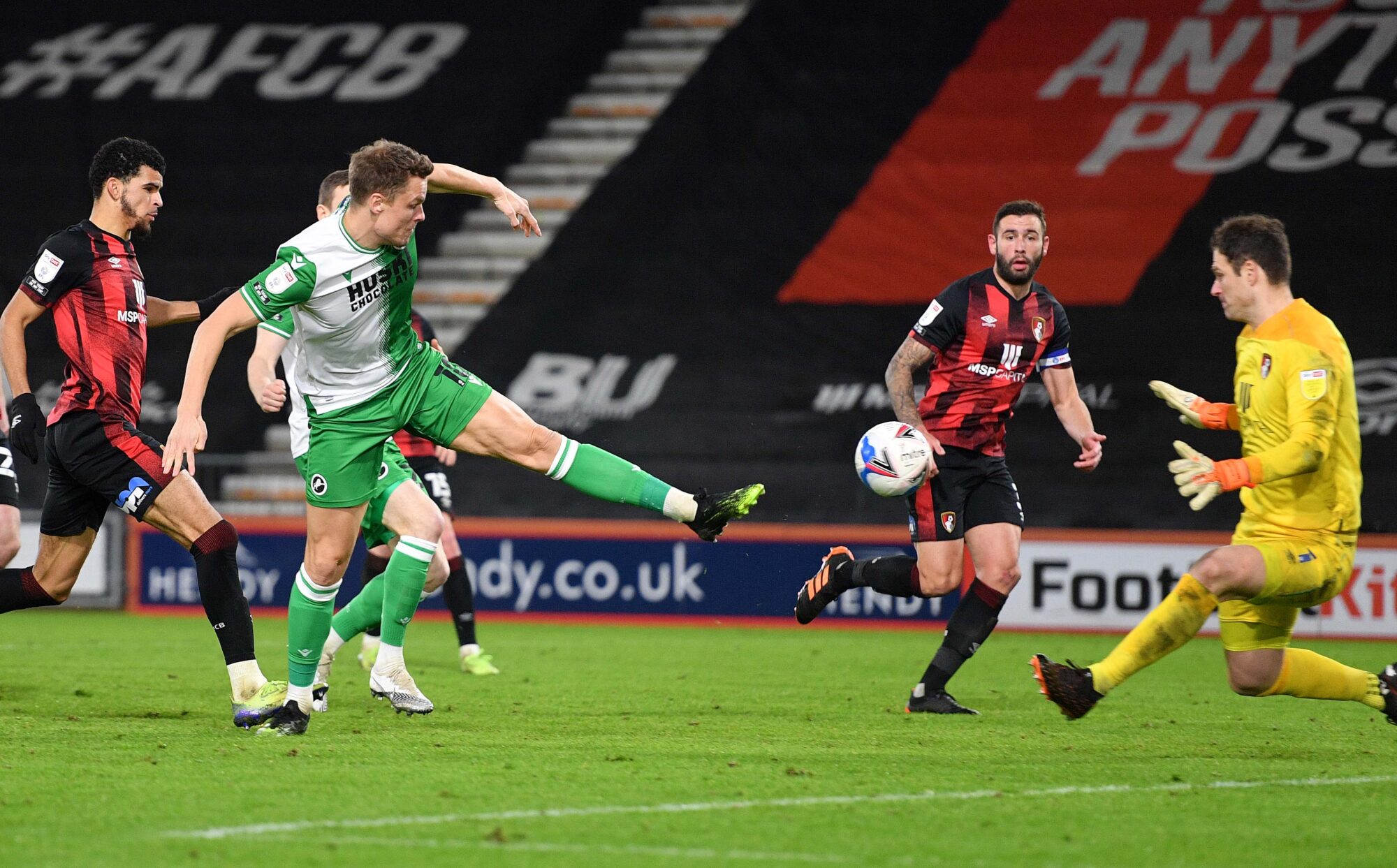 Having held their own in a breathless opening quarter, the Lions should have taken the lead when Ryan Woods turned smartly before setting Jed Wallace clear of the Cherries defence – only for him to be denied one-on-one by the legs of goalkeeper Asmir Begovic.