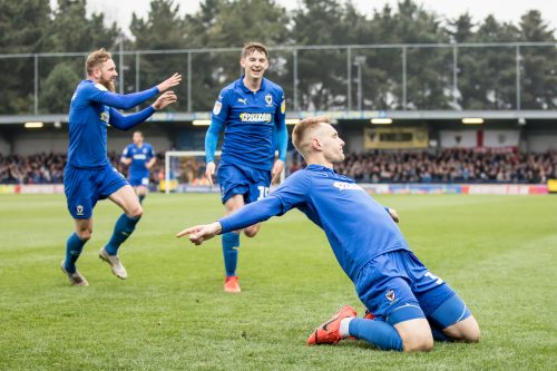 The Dons got their reward for an excellent start mid-way through the first half. Good play down the left saw Steve Seddon’s cross half-cleared to Pigott, who drove a crisp low finish into the bottom corner.