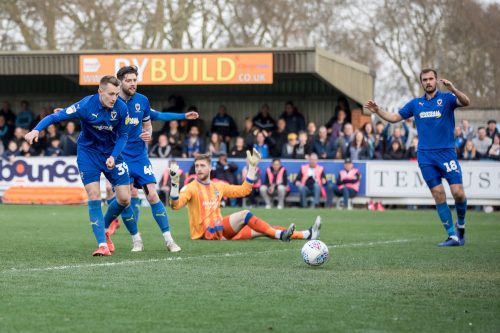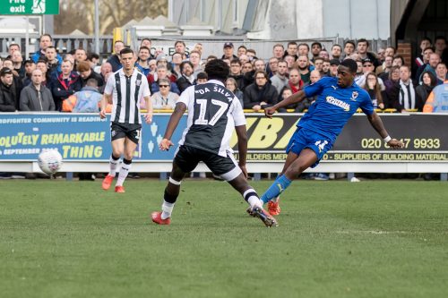 Toby Sibbick pushed the ball on for the overlapping Scott Wagstaff and his pull-back was finished confidently by the Dons’ number 41.