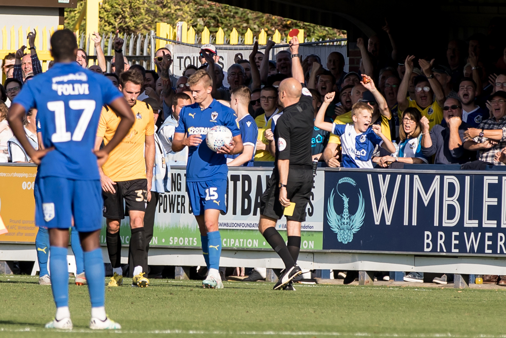 The young Finnish striker’s dismissal is unfortunate in more ways than one, as he has quickly emerged as a vital cog in the Wimbledon machine. His superb bending strike to give them the lead midway through the first half was his third in five games, and he will be missed this weekend at Peterborough.