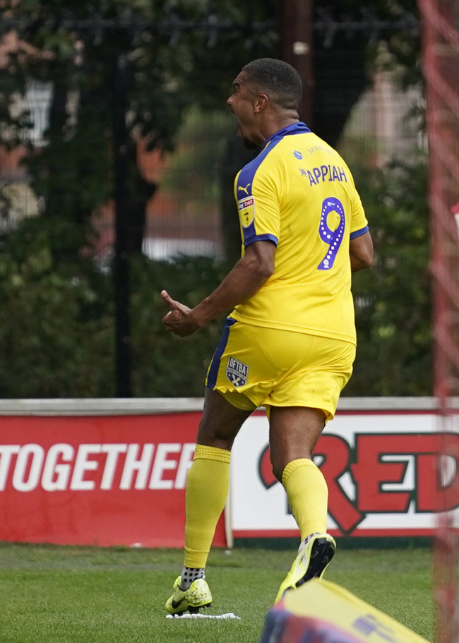 This was the reverse of the Dons’ opening fixture where they had followed a poor first-half performance with improvement in the second stanza against Rotherham. This time Wimbledon were the better side in the opening period and good value for the lead given them by Appiah, who nodded home Luke O’Neill’s excellent cross.