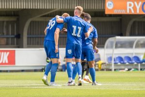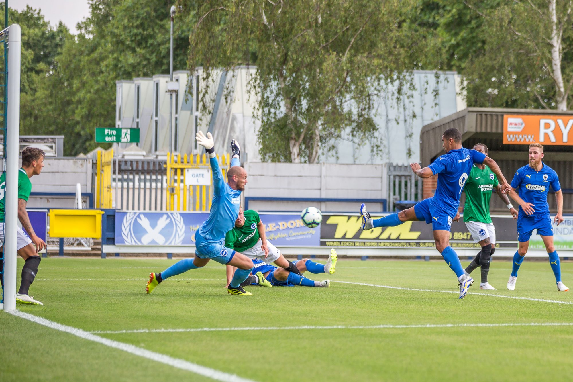 It was a Pinnock cross that created the second goal. The new signing’s delivery was headed down by Piggott and Appiah deftly lifted the ball over Button and into the net.