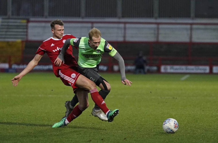 Mitch Pinnock continues to partner Joe Pigott in attack. This may well be less of a compliment to Pinnock than a reflection of Hodges’ views on Tommy Wood and Adam Roscrow, but the partnership seems to be working when the front to get some service.