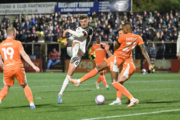 Bromley did produce a much better second-half performance, with the first chance of the half falling to substitute Olufela Olomola, who couldn’t connect with a fantastic ball that was zipped across the Blackpool box by Besart Toballoj.