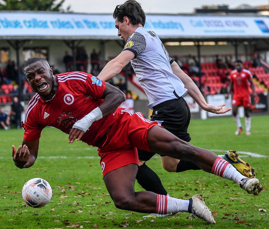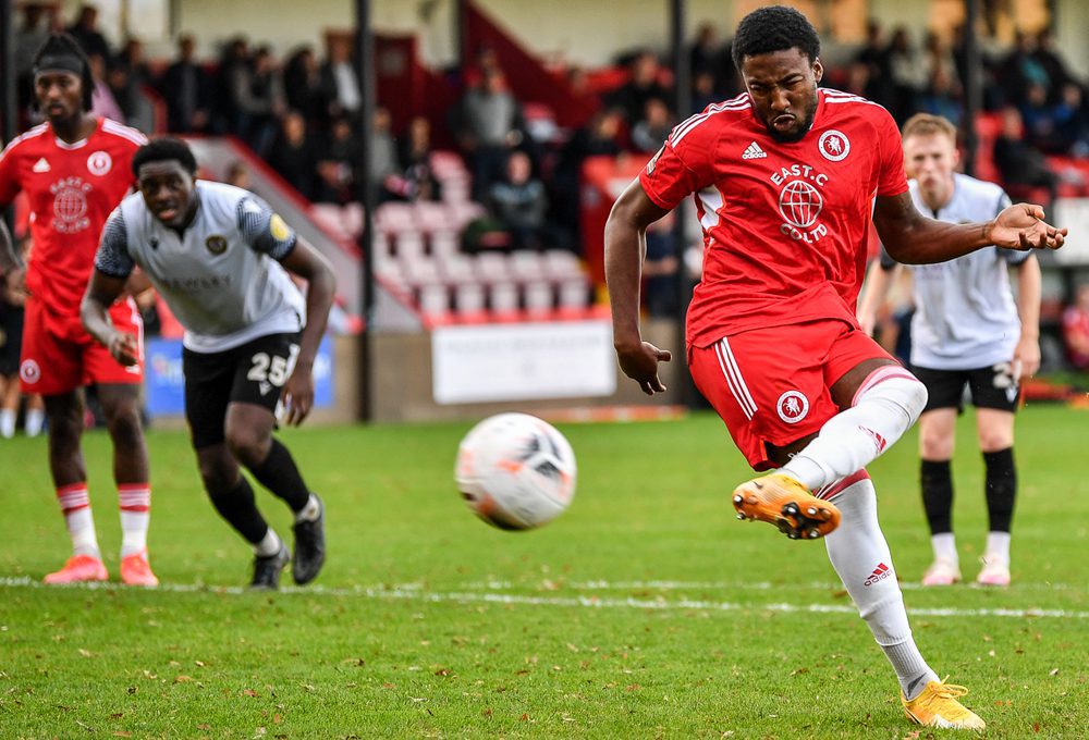 Within four minutes, the deadlock was broken. Ezennolim combined with Antony Papadopoulos before bursting into the penalty area where Allen brought him down. Aransibia stepped up and blasted an unstoppable spot-kick home.