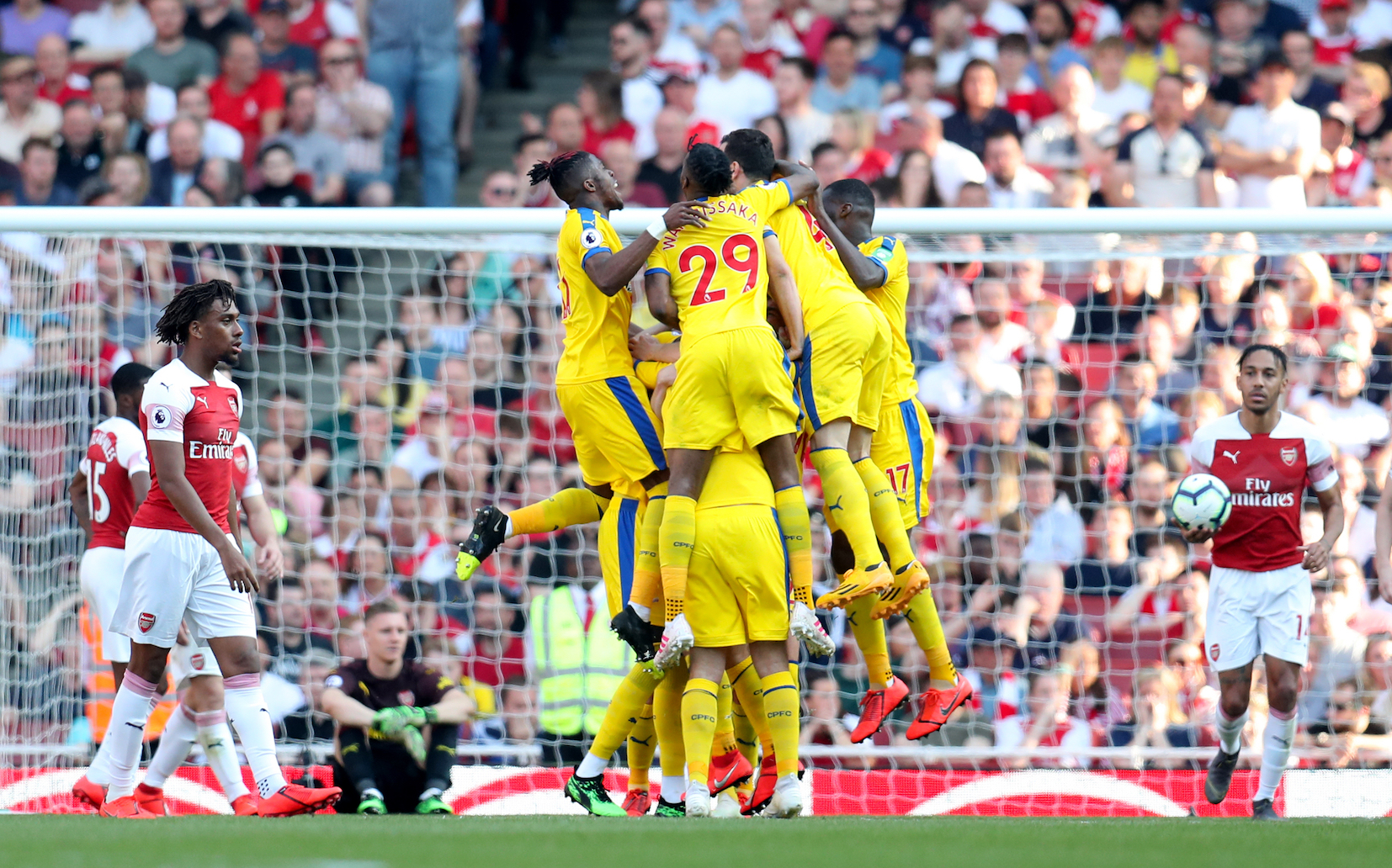 But Palace restored their advantage on 62 minutes in completely dissimilar fashion to Arsenal’s free-flowing build up – not that Roy Hodgson will care. Benteke flicked on Guaita’s long kick and Zaha raced through on goal, calmly dispatching his effort past Leno.