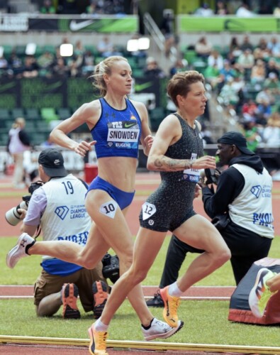 Snowden again ran well in another stacked world-class field, behind fourth-placed British record holder Laura Muir, but just ahead of another rival for an Olympic berth, Georgia Bell, who finished eighth. Snowden’s time of 4:00.24 was a season’s best and another Olympic qualifying time for the second Saturday in a row.