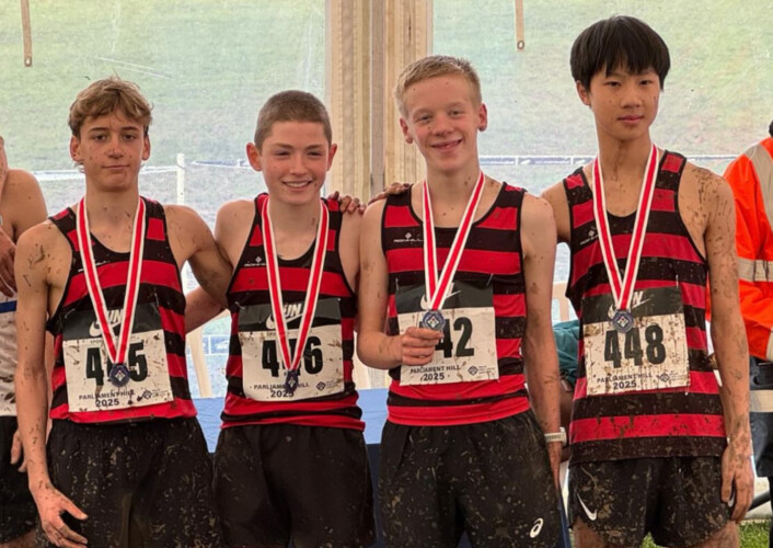 The U15 boys took pride of place with their squad depth helping to win silver medals with a quartet featuring a couple of newcomers to the podium compared to their recent team successes at county and area level. The successful scoring team was James Clements-Nash (10th), Tommy Clerkin (16th), Luca Boulton (27th) and Arnold Duan (44th).