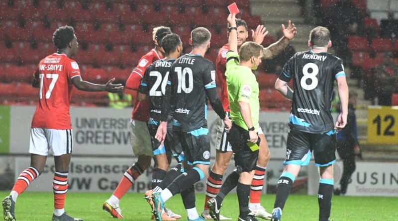 The dismissal was the third he has received since the centre-back joined the club from Crystal Palace in the summer 2020. He picked up his first yellow card for a challenge inside the Charlton half on the hour-mark – a passage of play that also saw Sean Clare carded as Rovers looked to counter.