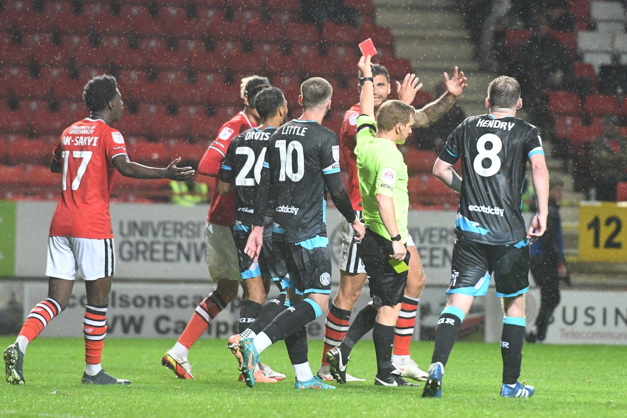 The dismissal was the third he has received since the centre-back joined the club from Crystal Palace in the summer 2020. He picked up his first yellow card for a challenge inside the Charlton half on the hour-mark – a passage of play that also saw Sean Clare carded as Rovers looked to counter.