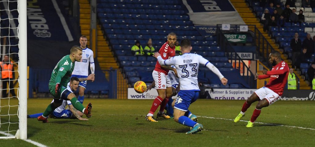 Mark Marshall’s first league goal in Charlton colours midway through the second-period secured all three points over Bury at Gigg Lane on Saturday – despite the fact that the Addicks were so depleted by injuries and player sales that they could only name five of a possible seven substitutes.