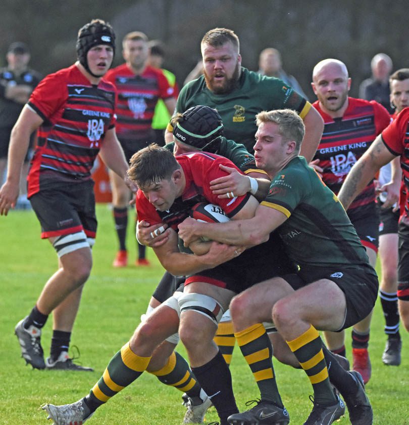 Nick Foster, who carved up Bury’s defence from full-back on numerous occasions, produced inside ball for Jake Hennessey to cross, before a scrum in front of the uprights saw Jake Lloyd hit a diagonal run for the right corner.