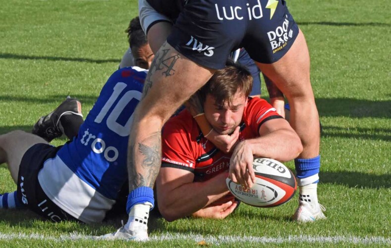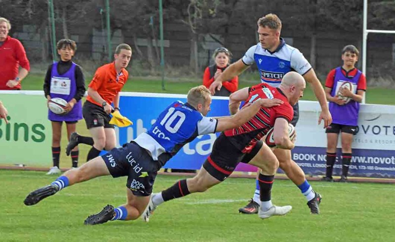 Twice the visitors were thwarted by forward passes, while at the other end, Blackheath’s accuracy kept them moving forward. When Matt Armstrong went close, support arrived for Tom Baldwin to drive over.