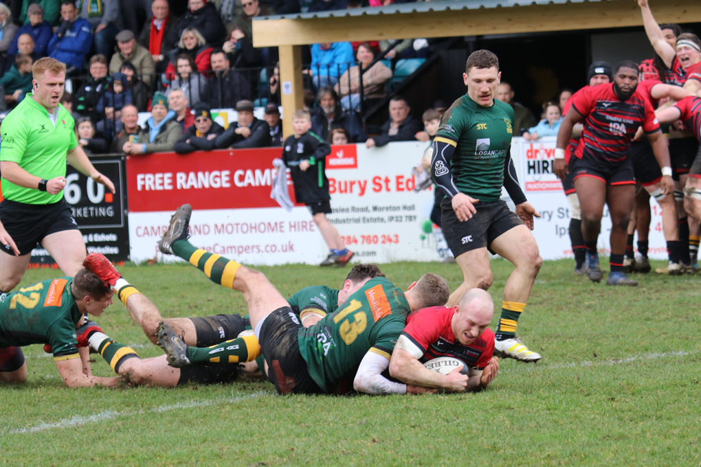 Soon after, Markus Burcham’s neat kick forced Bury into conceding a five-metre lineout from which the inside-centre produced a fine offload for Jake Hennessey to crash across.