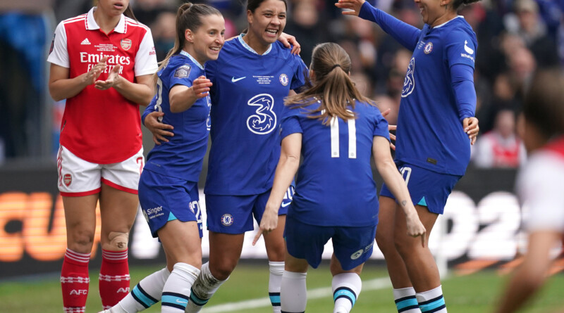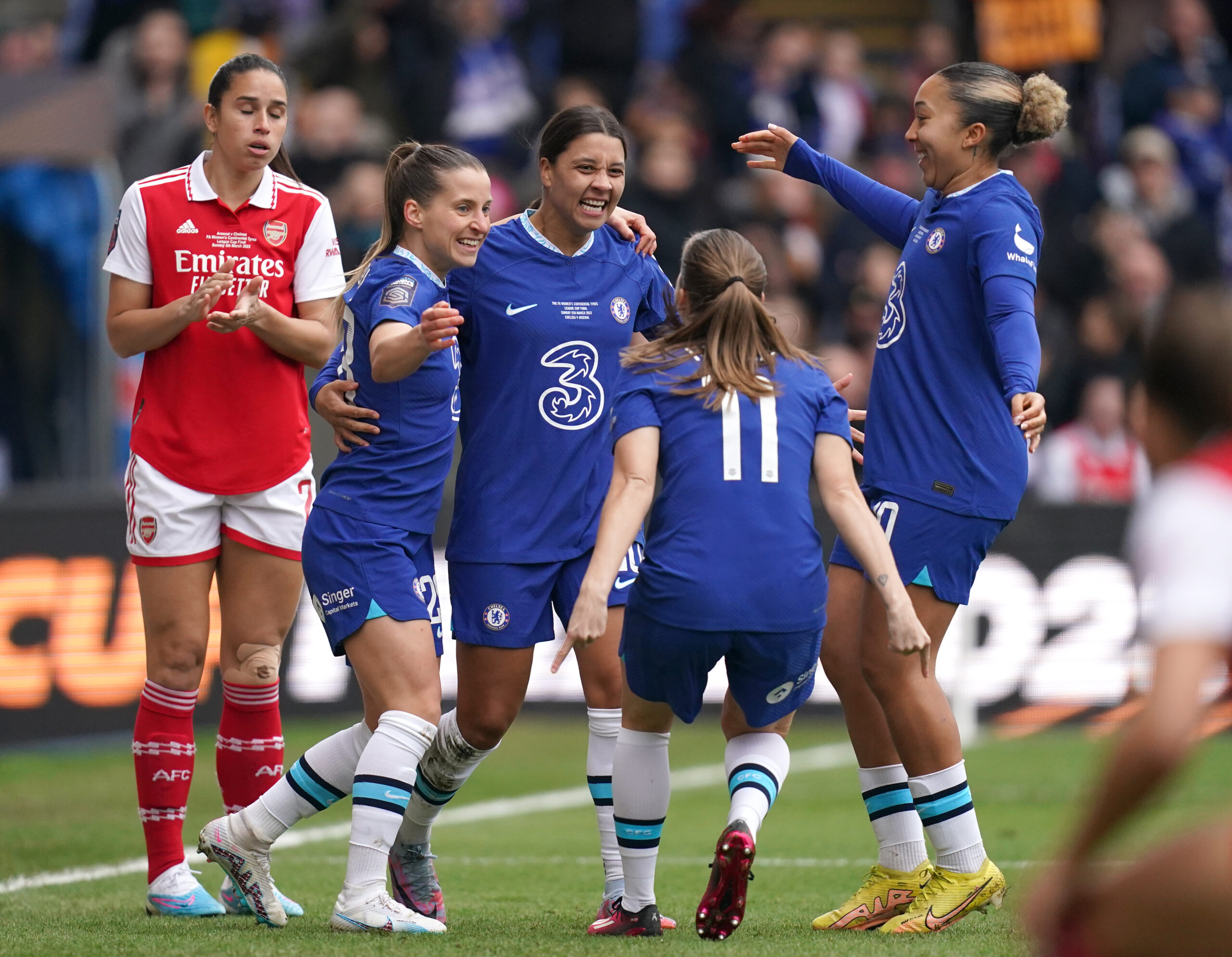 While Sam Kerr headed the opener for the Blues on two minutes, Stina Blackstenius, a Kim Little penalty and a 45th minute header by Rafaelle Souza saw the north Londoners overwhelm their west London rivals to take a 3-1 first half lead.