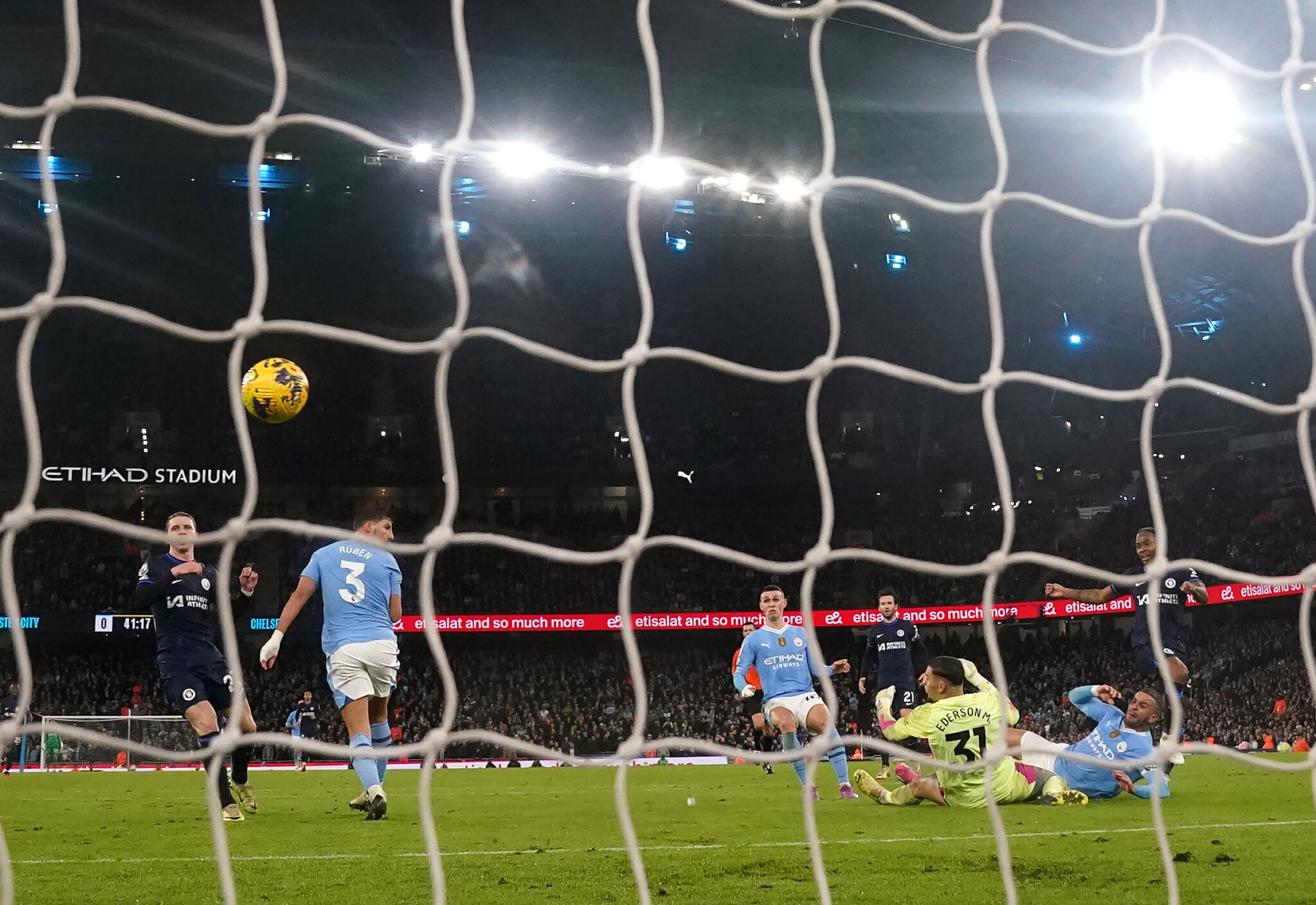 But before the 21-year old had time to make his first touch, City finally broke the rearguard and it was a tad lucky as Rodri’s edge-of-the area left-footer took a slight deflection off Chalobah’s thigh on the way and Petrovic even got a fingertip to it.