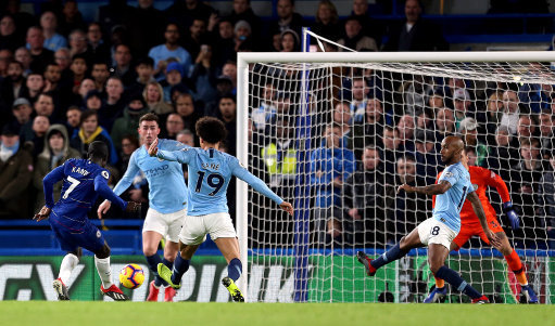 Desperate defending by Chelsea thwarted City on 32 minutes as Leroy Sane was denied twice by Cesar Azpilicueta.