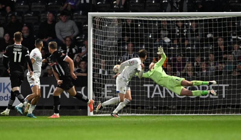 Notts County were then halted in their advances to open the deadlock, with Owen Goodman pushing away Conor Grant’s strike inside the area.