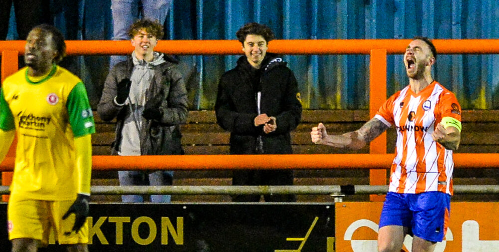 There was less than two second-half minutes on the clock when Braintree doubled their lead. Matthew Johnson’s long throw was half cleared and Luke Holness bundled it home.