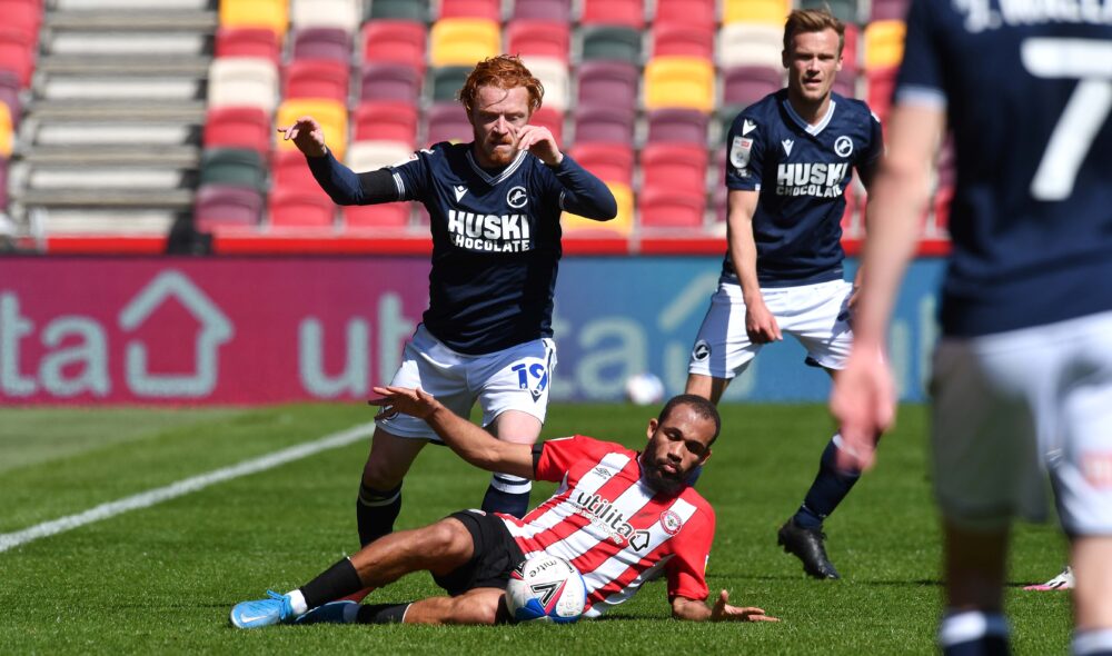The Lions’ high press caused Brentford problems but it was the hosts pressing game that nearly ended in a goal. George Evans lost the ball in the middle of the park to Vitaly Janelt. He played through Marcus Forss, who looked set to give Ivan Toney a tap in, but Millwall centre-back Murray Wallace made a crucial block to keep the scores level.