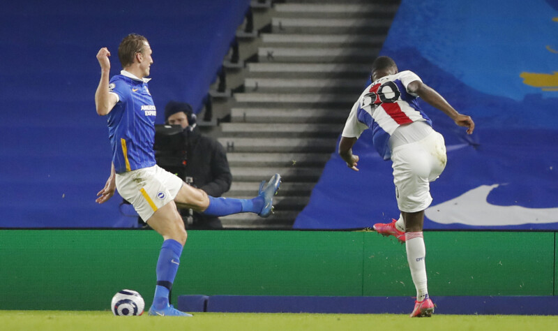 Palace spent the majority of the game coping with pressure from the hosts. Brighton caused particular trouble down the Eagles’ left side – where Tyrick Mitchell had replaced Patrick van Aanholt from the 3-0 defeat against Burnley.