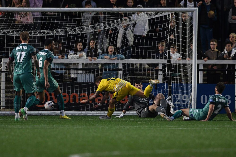 A series of shots by Emmanuel Dieseruvwe were unable to find the back of the net as the Shaymen imposed themselves over a struggling Bromley, who were unable to keep the ball.