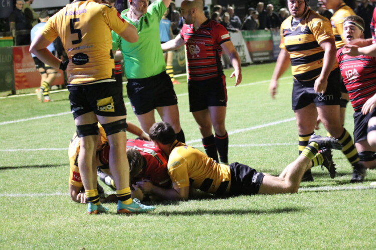 In front of a decent-sized crowd on a pleasant but cool August evening at The Marine Travel Ground, it was Jordan Burns who opened the Club’s account on just 10 minutes, the scrum-half moving blind off lineout ball.
