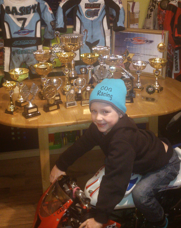 John saw an article in Motor Cycle News that GP racer, Scott Redding, was opening an academy for youngsters on minimoto bikes and recognising Casey’s natural talent, drove him 300 miles to the academy in December 2011 when he was only three and a half where he stood out immediately on the indoor track and was promptly placed into the fast group.