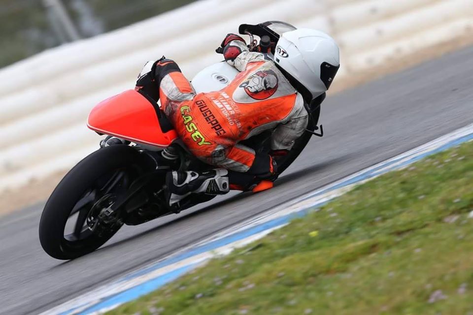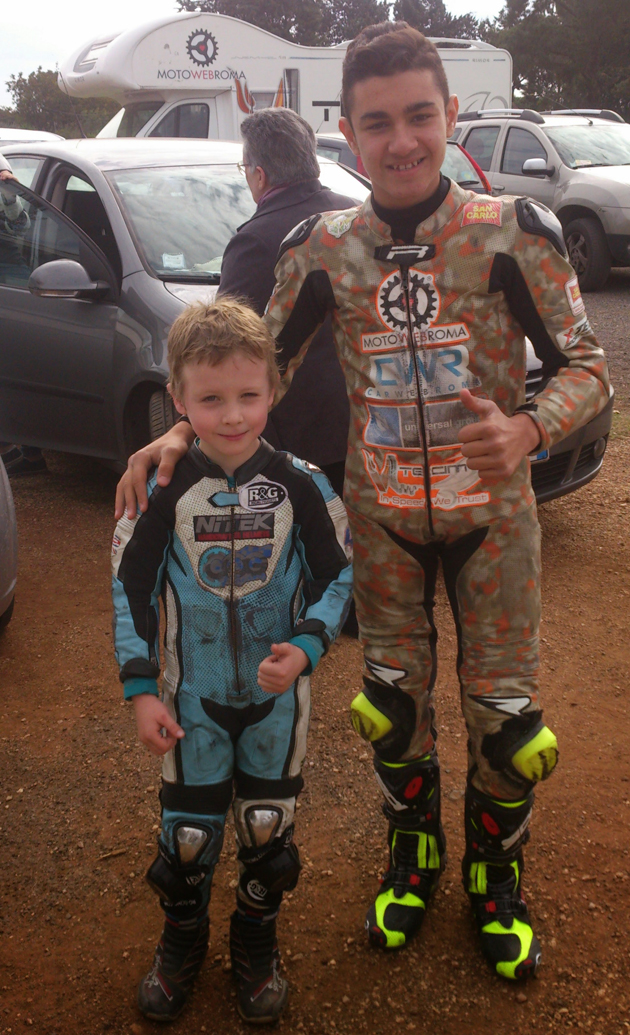 Despite having never ridden the bike or track before and being up against the top Italian and European riders, O’Gorman finished 4th on the first race after leading most of it and went on to further impress everyone by winning the second.