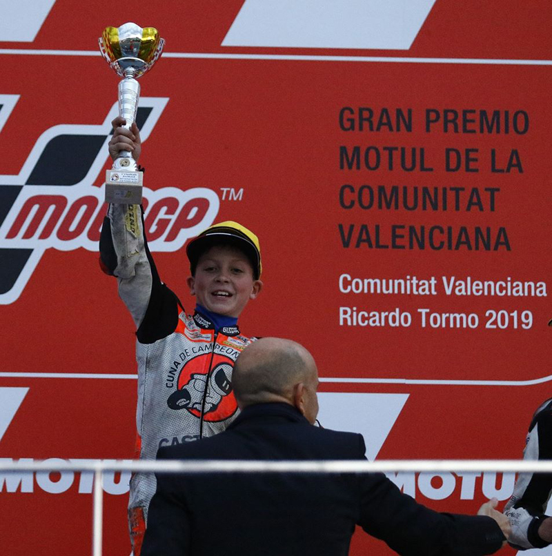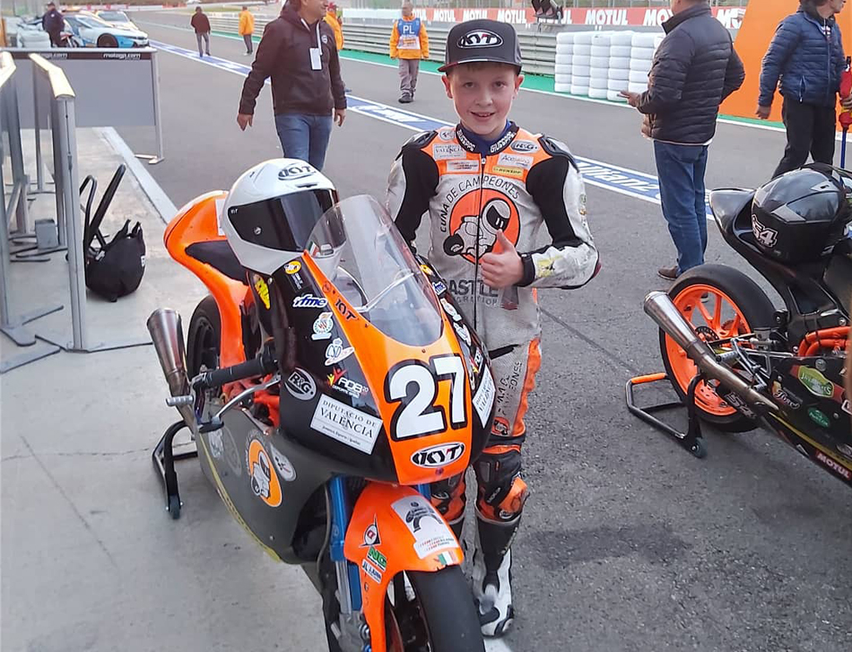 At 6 years old, Casey travelled to Spain to race in the Spanish BZM Cup on minimoto’s. A one make series for kids aged 6-10, he progressed well in the two rounds entered, placing 8th in the final race and was awarded Most Promising Rider of the Year.
