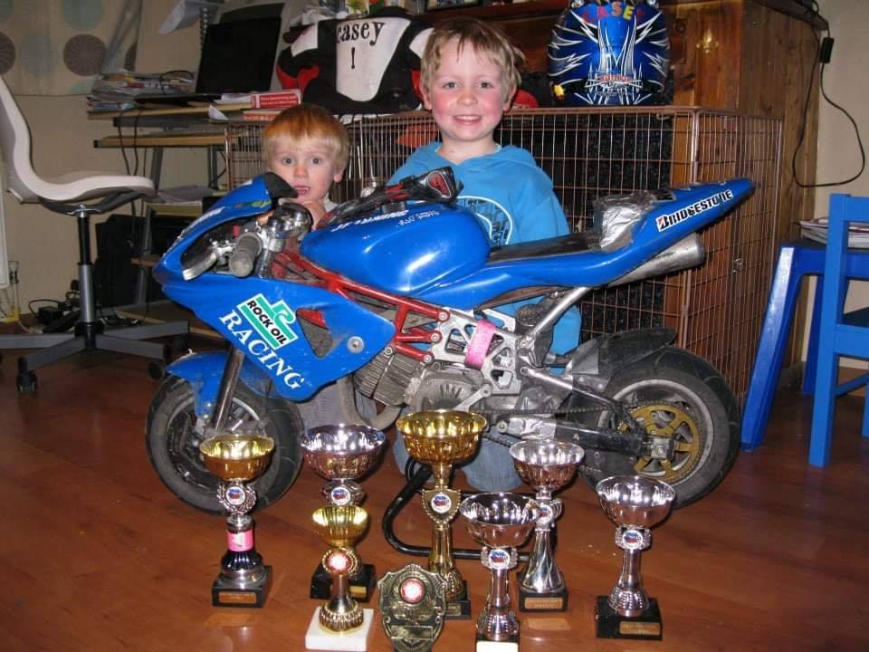 Casey’s first experience on two wheels happened before he was one years old when his aunt brought him an electric powered bike before progressing to a balance bike which he wore out the carpet in the living room on and rode his first motorbike shortly after his 3rd birthday, taking to it like a duck to water.
