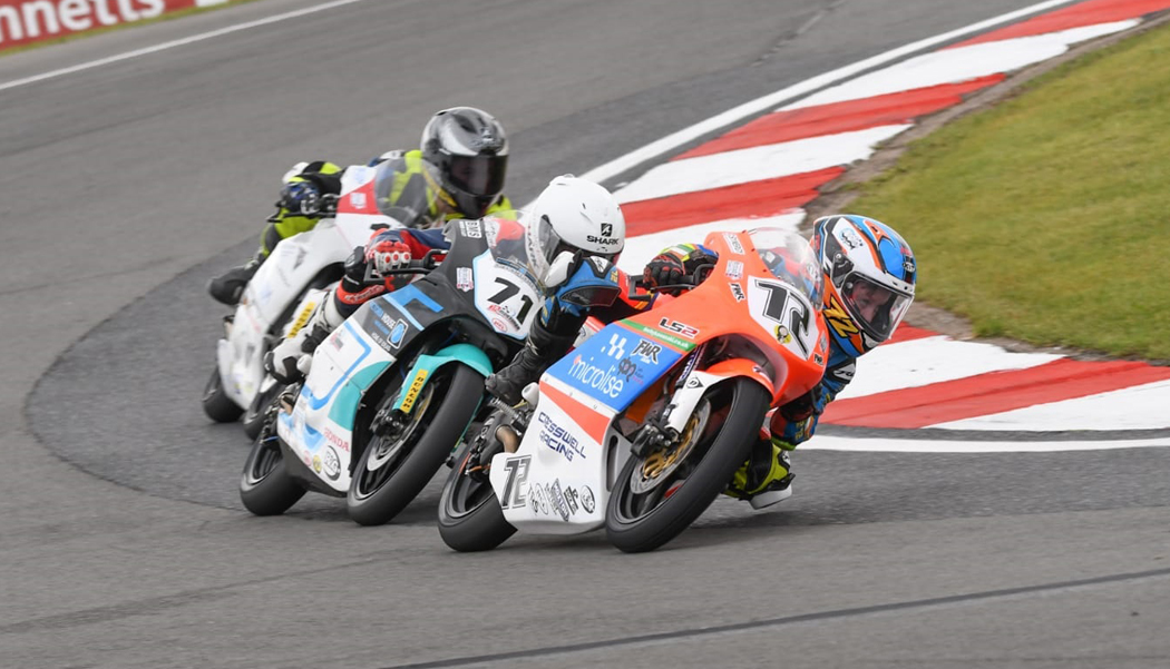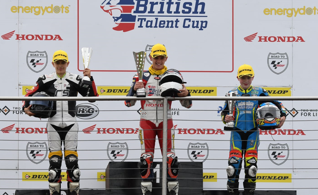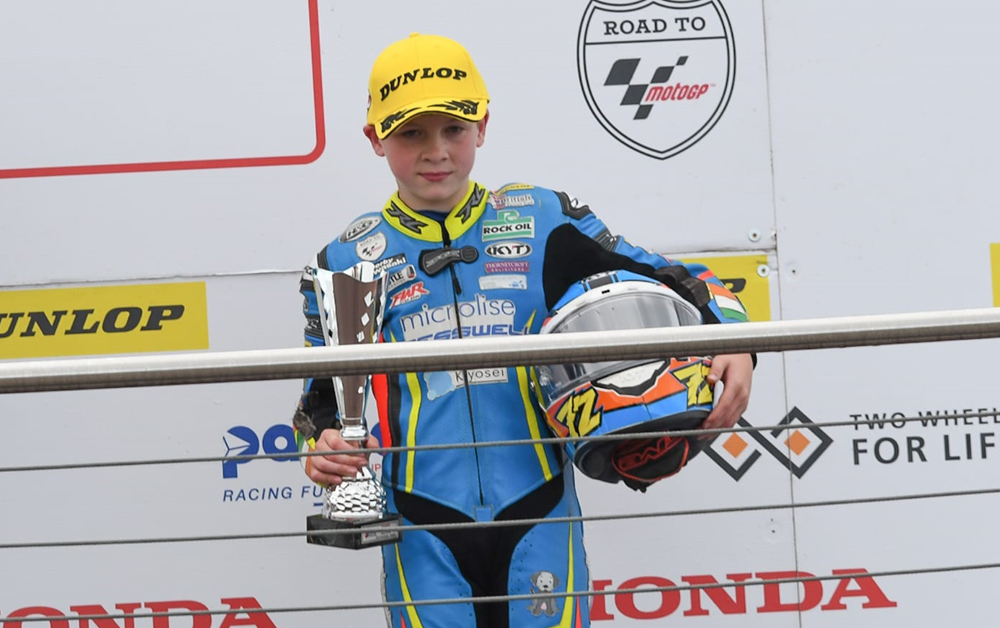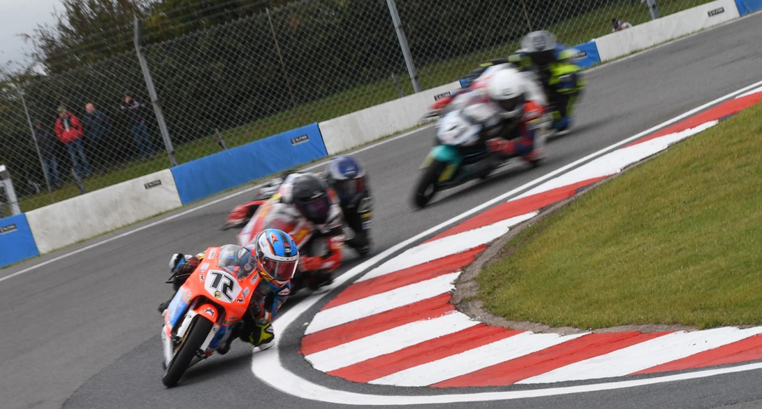 Erith motorcycle racer, Casey O’Gorman finished fourth and third in the wet at Donington Park last weekend to keep his title hopes in the British Talent Cup, alive.