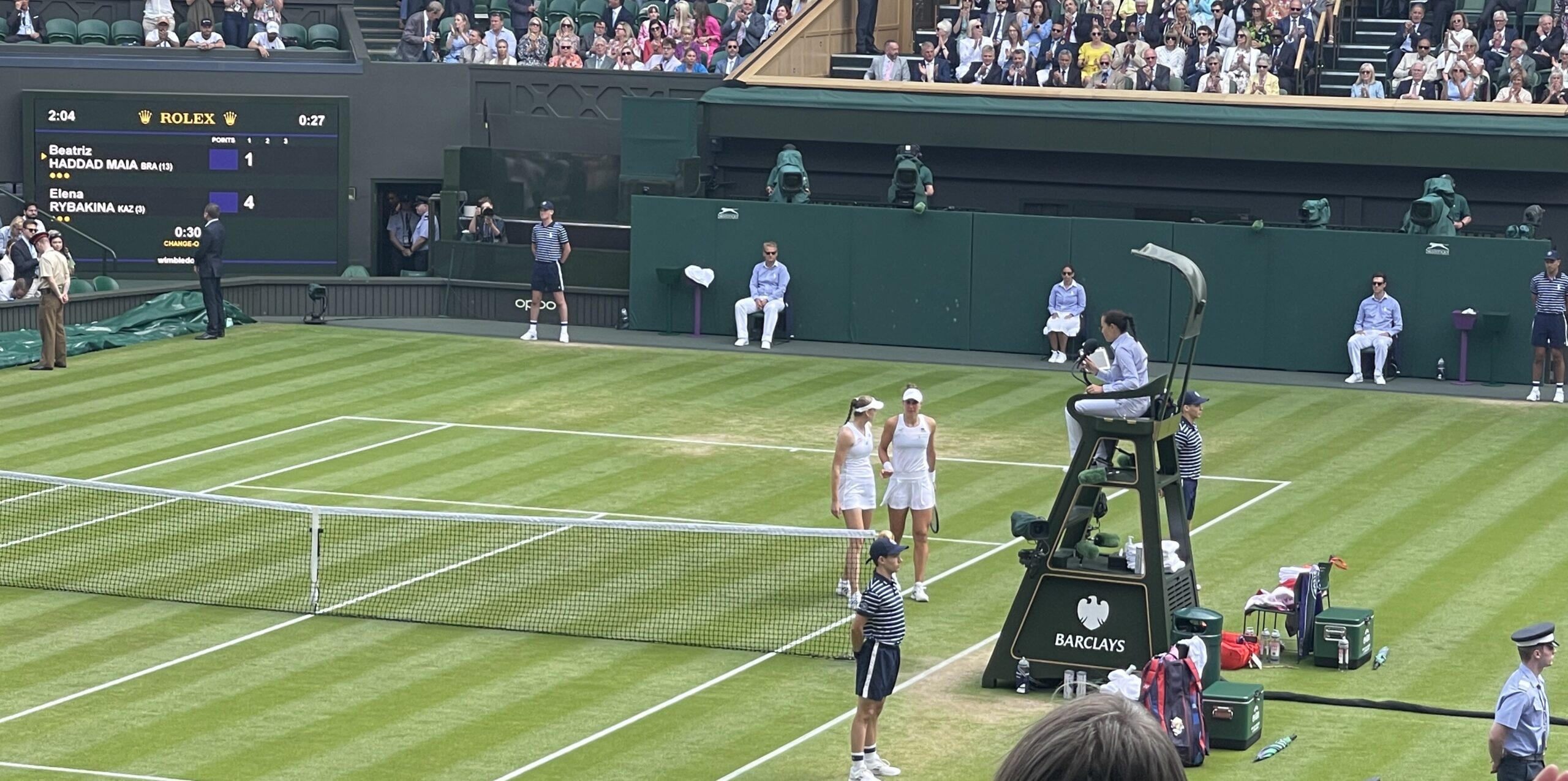 It was all over with 27 minutes as reigning champion Elena Rybakina helped injured Beatriz off Centre Court.