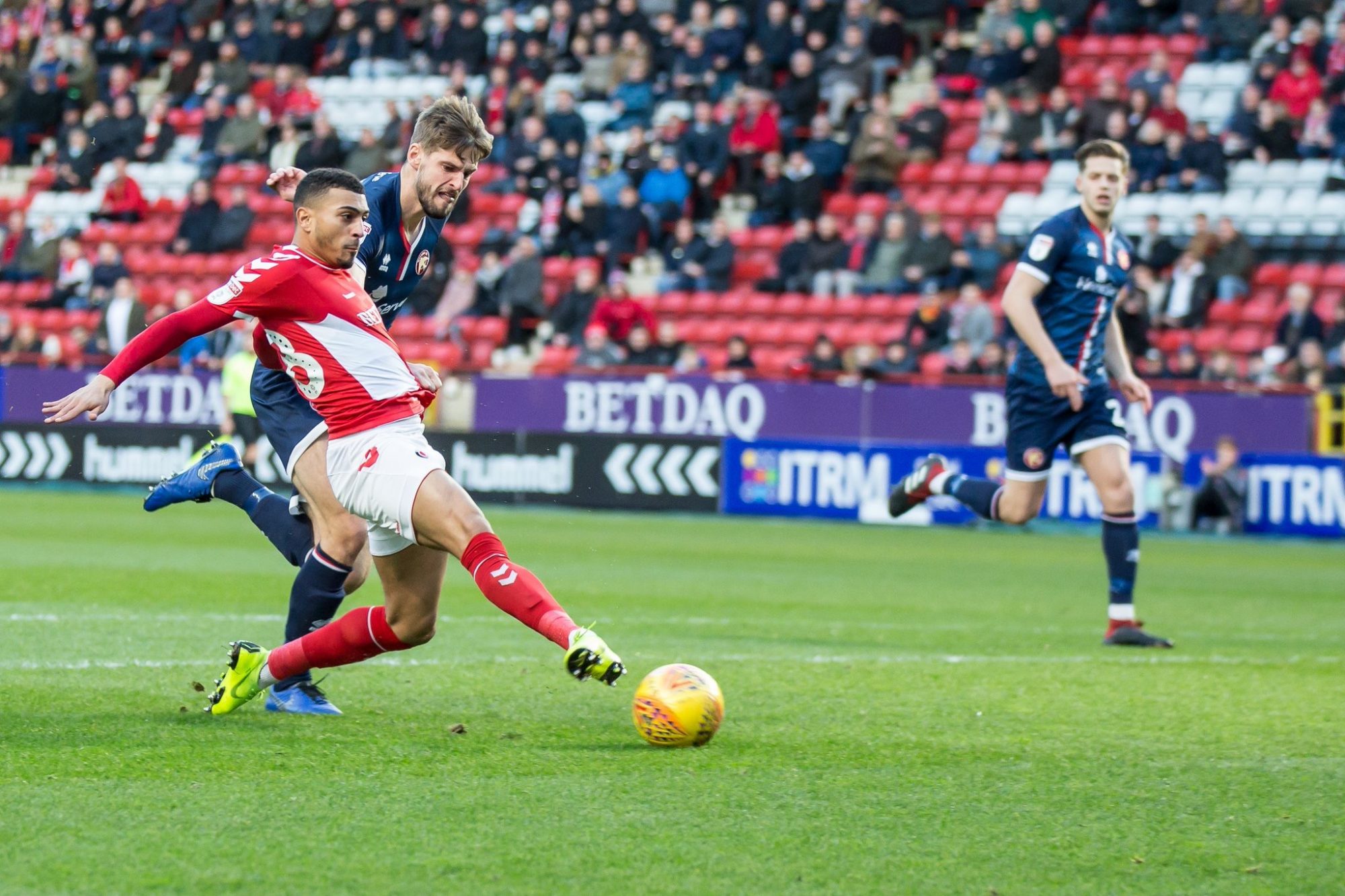 Fosu and Grant linked up again soon after, though this time the latter’s strike was charged down as he looked to fire at goal.